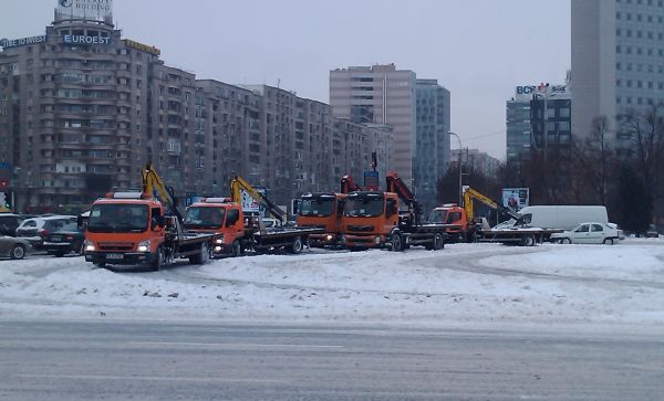 Pe la prânz am mers de la Piaţa Sudului la Aviatorilor cu un Symbol. Groaznic. Derapa şi fugea volanul la fiecare plecare de pe loc, curbele mai strânse trebuia să le iau cu viteza melcului şi nu stătea deloc bine la aderență. Nici alţii nu erau mai viteji însă. Am mers foarte încet, dar aşa mergeau toţi, iar prin centru era aglomeraţie mare. Am postat de ieri faptul că pe Magheru şi Aviatorilor era zăpadă multă pe bulevarde, iar pe străzile lăturalnice se mergea doar prin şanţurile făcute de alte maşini. Am văzut un Hummer H2 mergând fără nici o grijă, cred că şoferul nici nu observase că a nins. În Piaţa Victoriei era plin de macarale de tractare auto, nu ştiu dacă pentru a ridica maşinile parcate în calea plugurilor sau doar ieşite pentru a face un ban din amenzi date acum când toţi şoferii parcau pe unde apucau, din cauza nămeţilor de zăpadă.