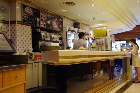 Farggi e genul de cafenea pe care mi-ar plăcea să o am eu. Culori calde, muzică, ştiri rulând pe o plasmă, prăjituri şi cafea foarte bună! Dacă treceţi prin Barcelona, mergeţi şi la un Farggi, e una în Piaţa Catalunia, pe colţul cu Paseo de Gracia şi mai sunt şi în alte zone, poate şi în alte ţări.
