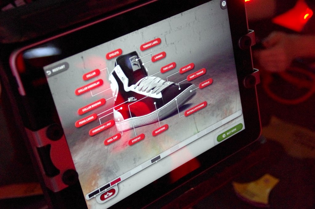 Aştept prezenta aplicaţiei în magazinul Puma, ca să văd cât m-ar costa pantofii pe care mi fac eu. Dintre bloggeri i-am salutat pe Dan Dragomir, Ionuţ Oprea, Piticu şi Alexandru Negrea şi am mai văzut prin public şi pe alţii pe care îi ştiu din vedere. Dintre vedete, pe lângă Guess Who şi Andi Moisescu, am recunoscut pe Dani Otil, Puya și Andreea Bălan.