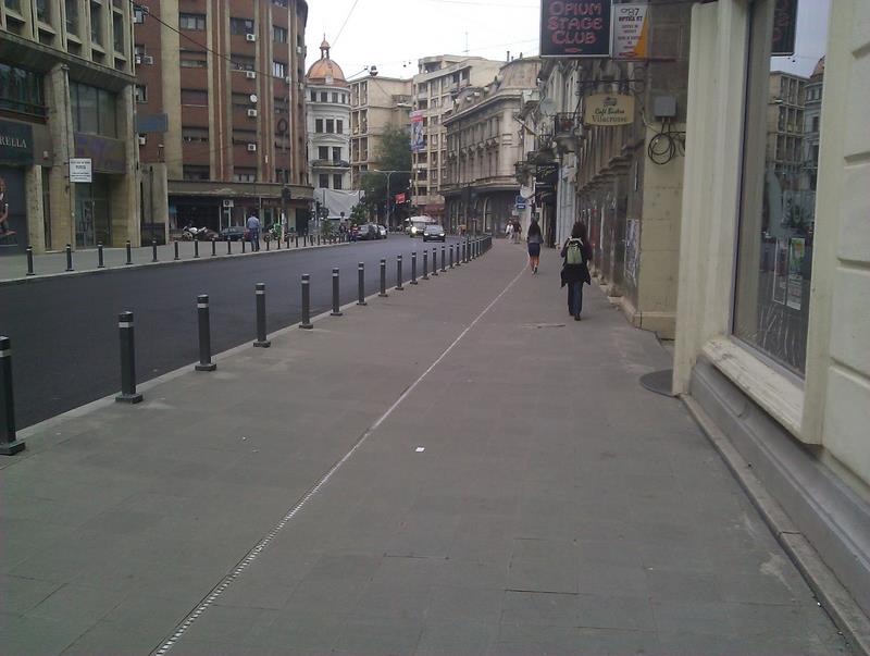 O iniţiativă foarte bună a Primăriei s-a finalizat de curând. Trotuarul de pe Calea Victoriei din zona magazinului Victoria/IGPR a fost lărgit prin “cotropirea” unei benzi de circulaţie auto, aşa că acum pietonii pot merge liniştiţi pe acolo. Până acum erau zone în care trotuarul se îngustă de abia avea loc o persoană să treacă şi mereu erai cu ochii la şosea, să nu te calce vreo maşină. Noul trotuar e lat cât să încapă multe persoane, aşa cum e bine într-o zonă turistică (pasajul Villacross e mai jos, la fel și Palatul CEC și Centrul Istoric), iar stâlpii de protecţie nu permit maşinilor să parcheze pe el.