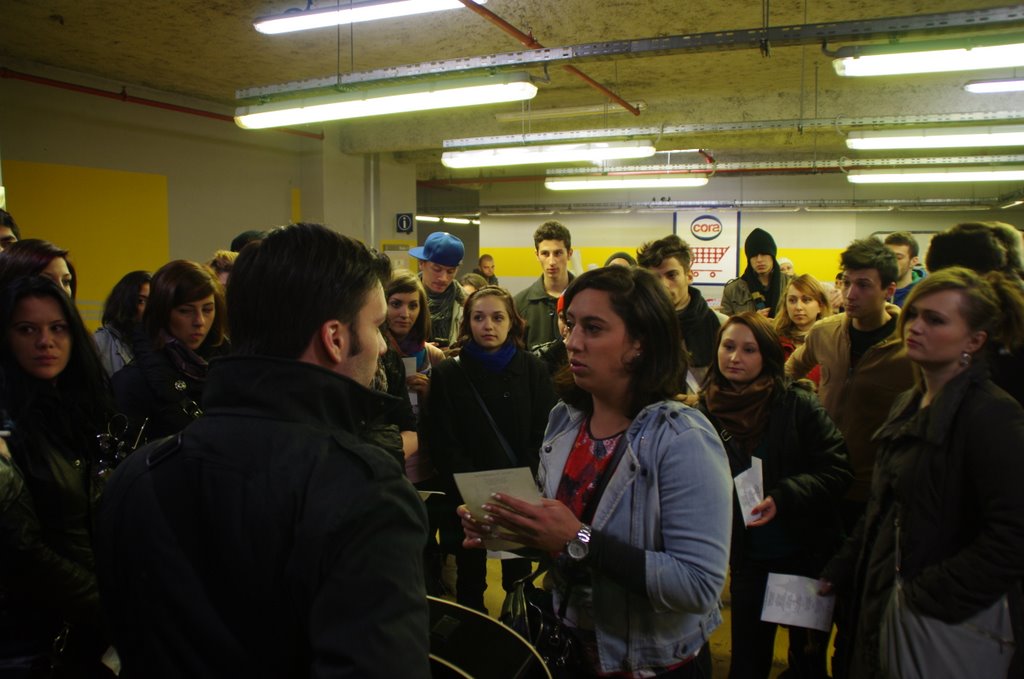 @Radu Balan: Flashmob-ul este o actiune inedita realizata de un grup de oameni care se strang intr-un loc public pentru a oferi un moment artistic, distractiv sau satiric.