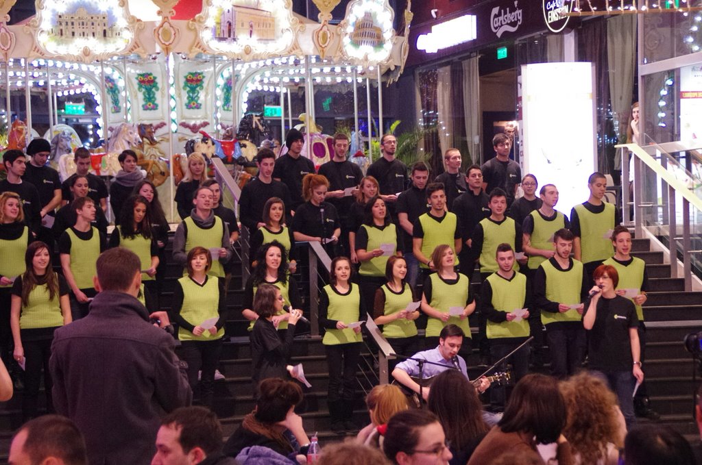 Spre surprinderea mea, la #FlashmobCuLer de ieri nu s-a pronunţat deloc cuvântul “ler”. Am ascultat în schimb o colinda cultă (aşa se zice?), frumos cântată de (şi aplauze pentru) Ionuţ Tecuceanu, Anca Duma şi Daniela Matei, împreună cu un cor de vreo 40 de alţi tineri.