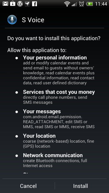 S-Voice este dezvoltată de firma Vlingo, care are propria aplicaţie de asistent personal în Google Play, gratis. Nu este la fel de complexă ca S-Voice, dar la o adică merge şi aceasta. Dacă aveţi deja Vlingo instalat, scoteţi-l înainte de a pune S-Voice.
