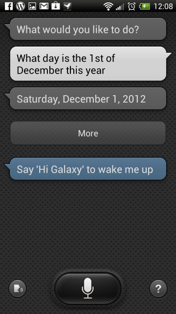 Un mic disclaimer: aplicaţia nu funcţionează la fel de bine ca pe Galaxy S III. Vocea nu sună la fel de bine, nu e la fel de rapidă, nu este integrată la fel de bine în telefon (nu m-aş baza pe activarea ei vocală, de exemplu). Nu judecaţi calitatea ei pe Galaxy S III după modul în care rulează pe alt telefon, n-ar fi corect faţă de Samsung.