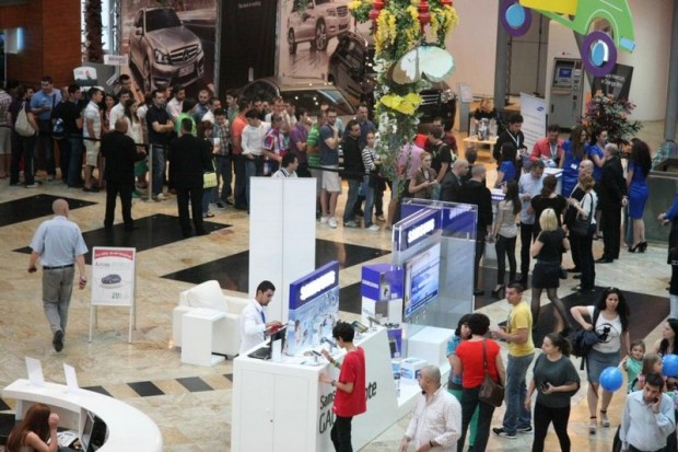 Comunicatul oficial vorbeşte despre 1000 de oameni vizitând standul Samsung din Băneasa Mall, 100 dintre ei plecând cu câte un voucher de discount 100 de euro pentru un Galaxy S III [în stoc, review-ul meu]. Eu n-am văzut decât aglomeraţia normală de mall, dar e drept că am ajuns cu 35 de minute dincolo de ora oficială a bătăii pentru vouchere.
