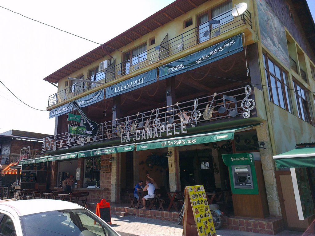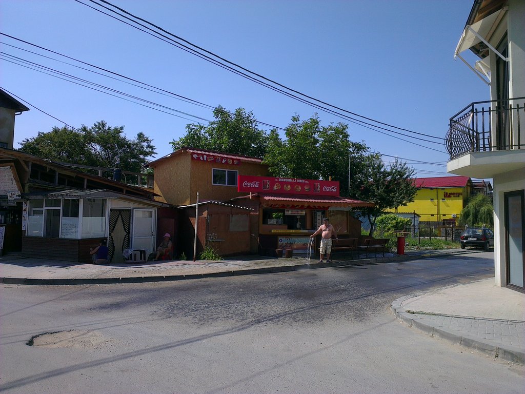 Prima prin care am trecut a fost Vama Veche. E prima oară când ajung aici pentru ceva mai mult timp decât “uite indicatorul de intrare, uite indicatorul de ieşire”. Nu era multă lume, cred că vreo 200-300 în total, din care jumătate pe plajă şi restul pe la terase. Apa era bună, caldă, verzuie, dar adâncă de 1,8 metri după 2-3 paşi de la mal.