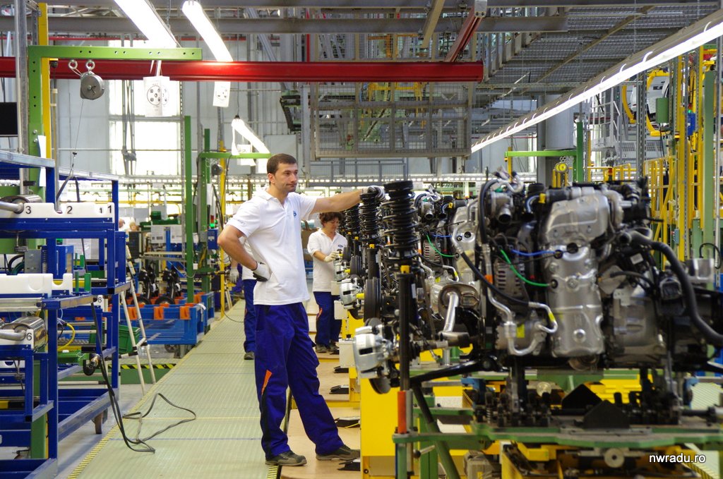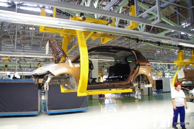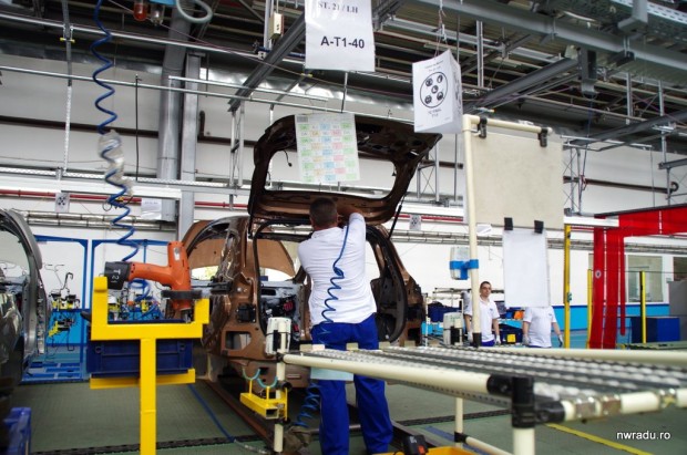 O altă ipostază este cea a maşinii cu schimbător de viteze şi frână de mână montată, plimbată în continuare pe traseul ei pentru a-i fi montate celelalte elemente interioare, pe baza dotărilor fiecărui model şi a pieţei pe care va fi trimisă (90% din producţie va merge spre export).