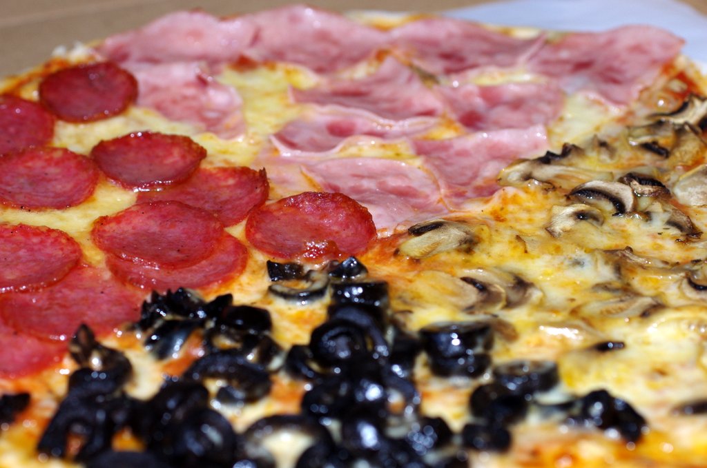 Au fost o Quattro Stagioni şi o Carnivora. Prima are sos de roşii, mozzarella, şuncă, salam, ciuperci, măsline, a doua sos de roşii, mozzarella, şuncă, salam, cârnaţi afumaţi şi bacon.