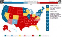 În general se știe cu cine ține fiecare stat în parte. Cele de pe Coasta de Est și de Vest arată, din sondaje, o puternică susținere pentru Obama, în timp ce centrul țării îl preferă pe Romney. Situația este cam 236 la 206 electori în favoarea lui Obama. Miza reală sunt statele indecise precum Ohio, Florida, Virginia, Colorado și vreo 3 altele, unde și candidații au făcut campanii puternice. Aici chiar trebuie văzut cum se va vota.