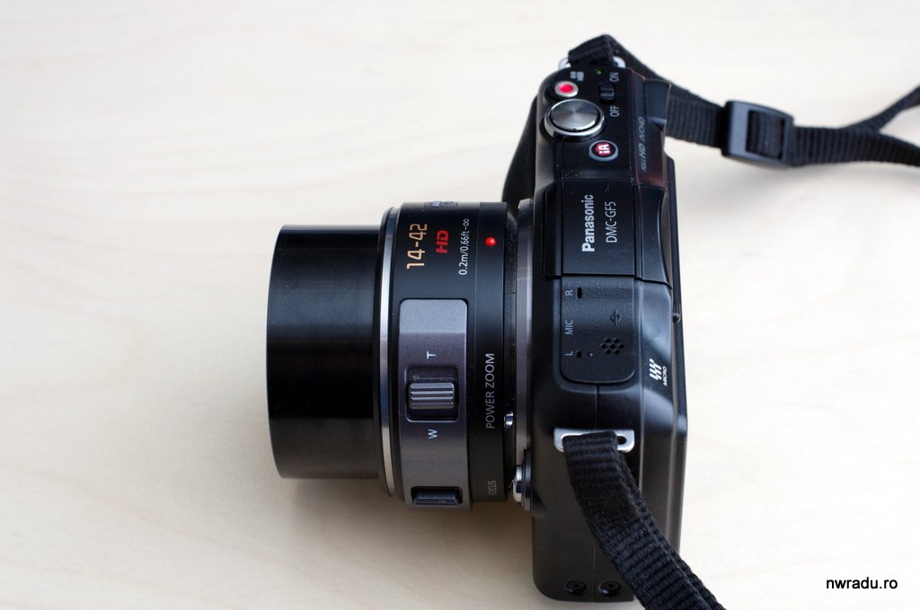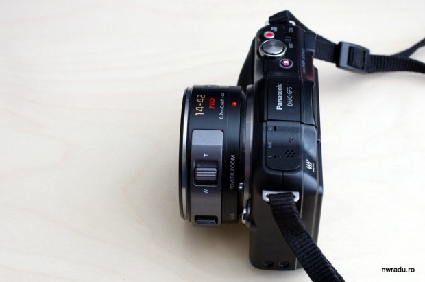 Obiectivul de kit a fost un 14-42mm cu F3.5-5.6, destul de subțire. Factorul de crop este 2x.