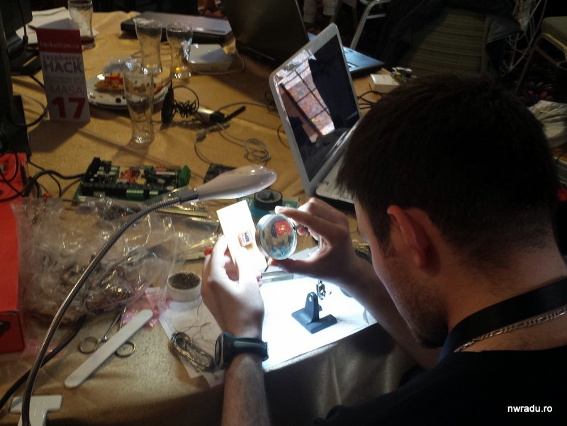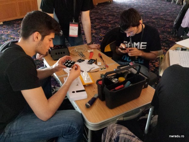 Cel mai tare mă bucur să văd că aproape toate echipele și-au adus echipamente, scule, dispozitive și alte accesorii necesare. Am văzut multimetre, osciloscoape, motorașe, plăci, câteva ciocane de lipit. Sper să țină rețeaua electrică.