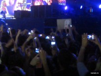 O domnișoară de pe lângă mine face o fotografie panoramică, deși totul este în beznă atunci. Va avea o imagine foarte lată și aprope complet neagră. Trei rânduri mai în față cineva stă cu LED-ul aprins pentru că filmează. La toate marile hituri se fac fotografii și filme de vezi numai telefoane pe sus. De ce, când pe Infomusic.ro găseșți fotografii excelente, făcute cu un DSLR bun de către un fotograf cu acreditare și poziție excelentă? Enjoy the music, oameni buni!