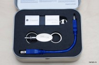 Well, împachetarea este frumoasă. O cutie metalică, inscripționată cu numele produsului, în care găsești stick-ul, un breloc pentru acesta și un mic cablu prelungitor USB 3.0. Cablul este chiar util, având în vedere că stick-ul este destul de gros și e posibil să nu-ți încapă dacă ai porturile USB înghesuite (cum se întâmplă la unele laptopuri) sau mai retrase în carcasa calculatorului, ca la unele desktop-uri.