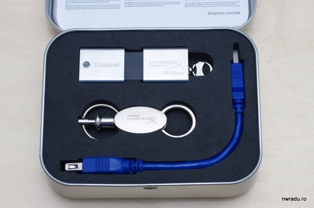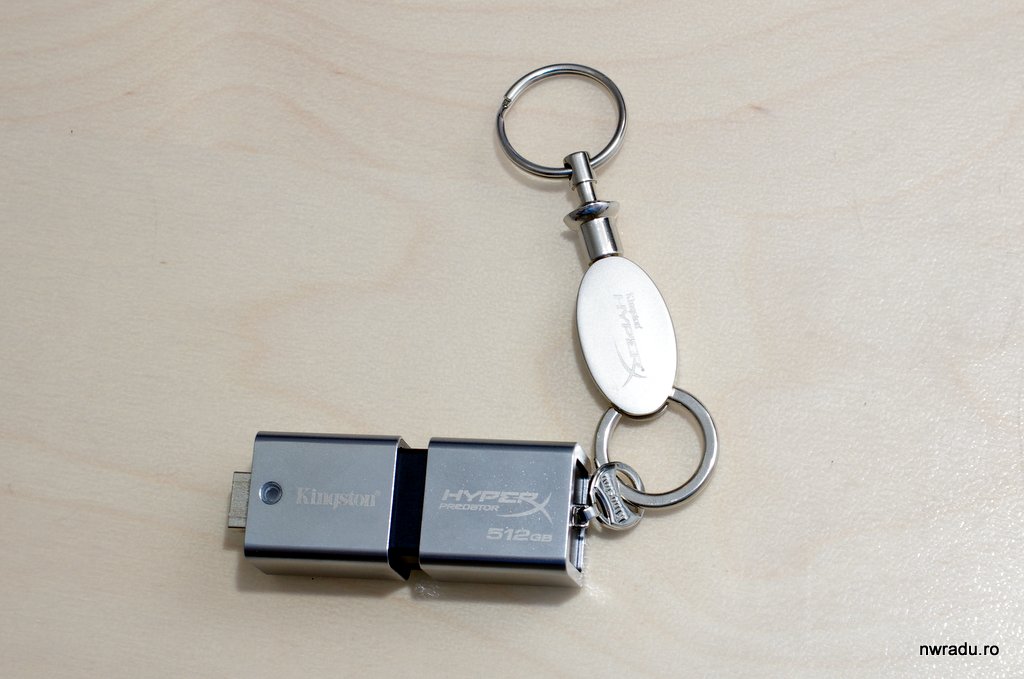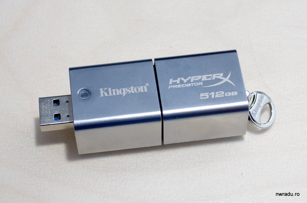 Mai exact numele complet este Kingston HyperX Predator de 512 GB, in tehnologie USB 3.0. Să vezi 512 GB de memorie rapidă într-un pachet atât de mic este uimitor, mai ales când imi aduc aminte că primul meu hard-disk avea 325 MB cu totul, dar acesta nici măcar nu este cel mai mic stick USB fabricat de Kingston; au unul și de 1 TB, probabil pentru cei care chiar vor să compenseze pentru ceva…