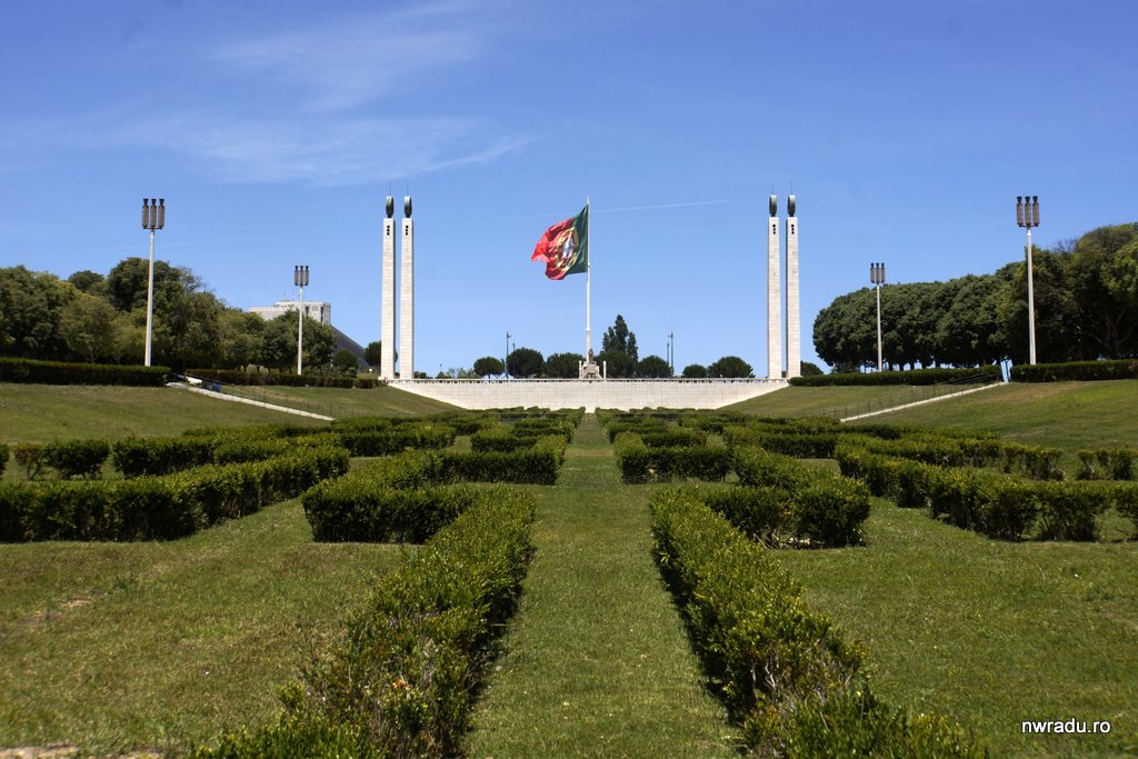 Partea cu roșu începe de la parcul Edward al 7-lea și coboară spre Marchizul Pombal / Marques de Pombal, care este, zic eu, centrul orașului. O piața frumoasă și aglomerață, de unde continuați în jos pe Avenida da Liberdade, un bulevard pitoresc, asemănător cu Paseo de Gracia din Barcelona. Clădiri frumoase, terase de-o parte și de alta, iar în capăt ajungeți în două piețe frumoase, Restauradores și Rossio.