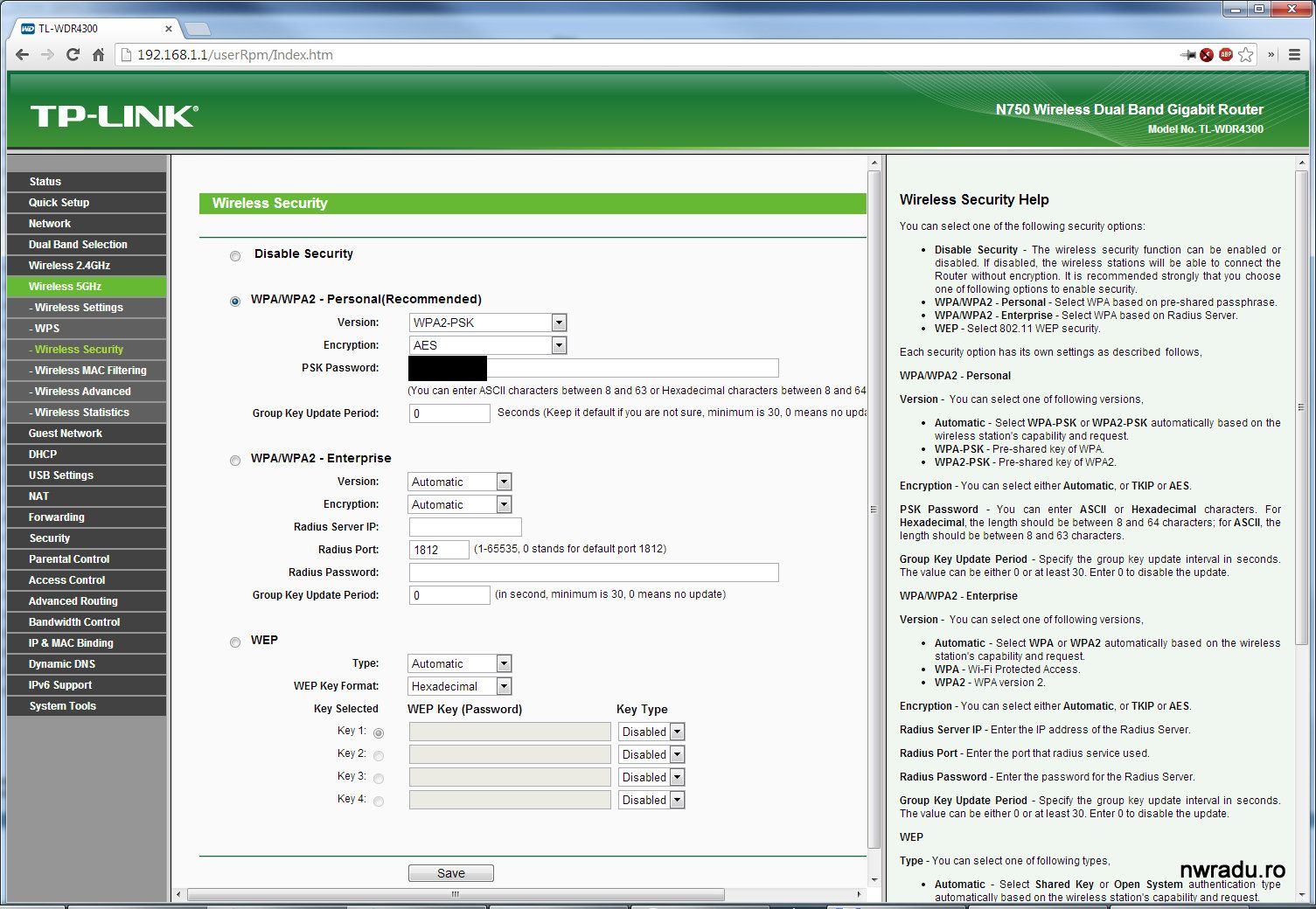 Wireless 5 GHz. Același lucru ca mai sus, doar că pentru a doua rețea wireless, care poate avea alt nume și altă parolă.