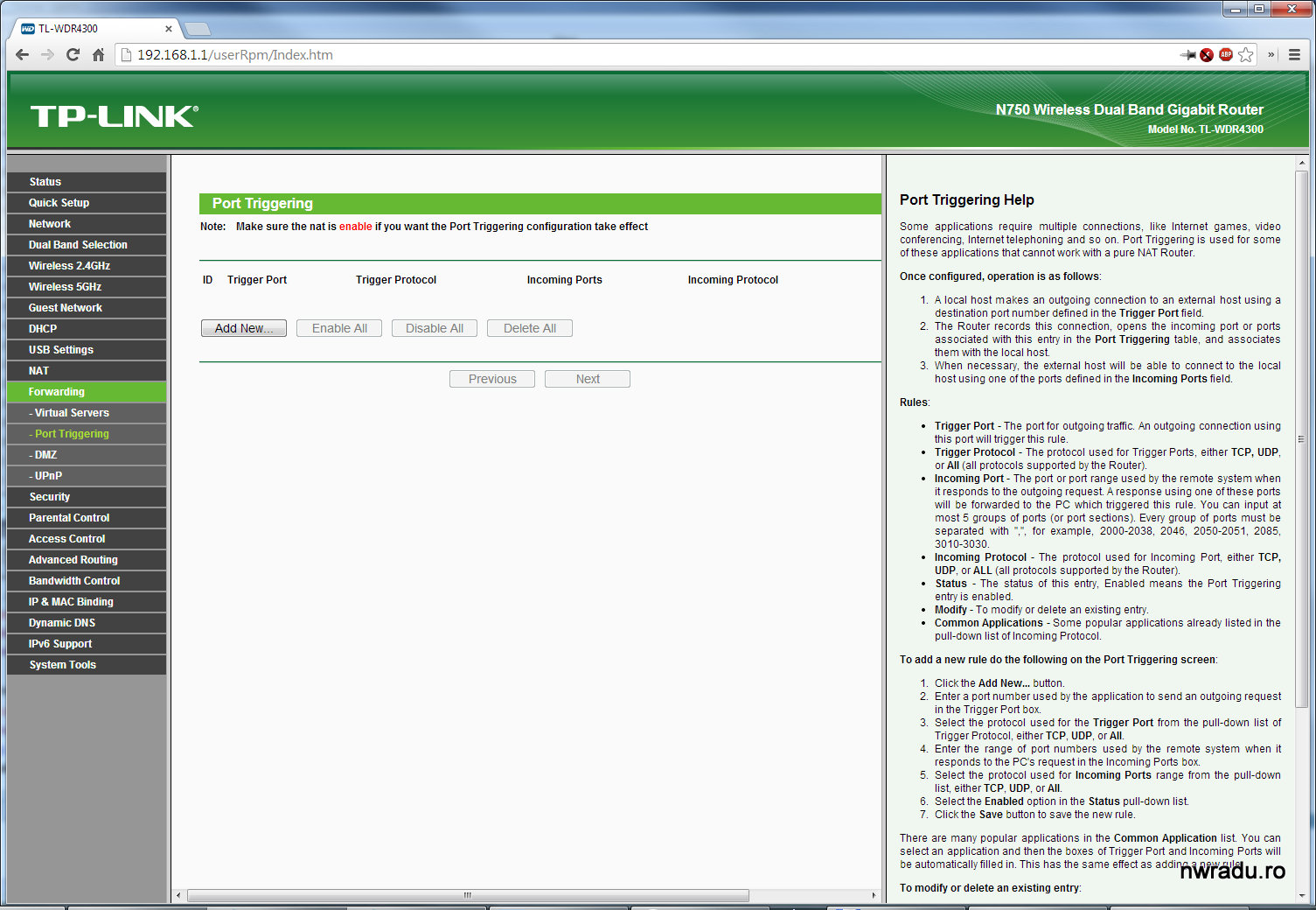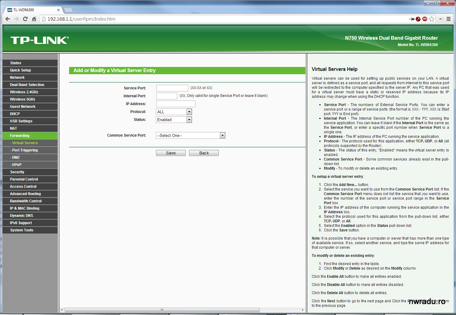Forwarding. Ai opțiunile clasice de servere virtuale, port triggering, DMZ și UPnP.
