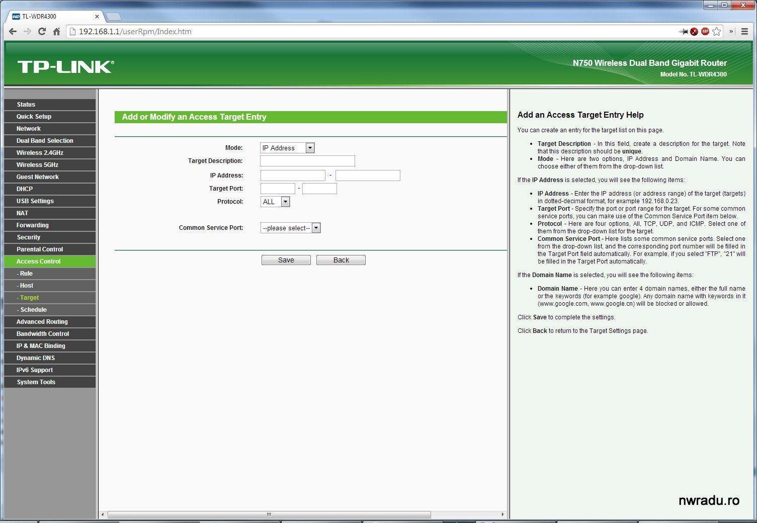 Access Control. Este un meniu mai complex în care poți configura ce IP-uri au voie să iasă pe net, spre ce adrese și în ce interval orar.