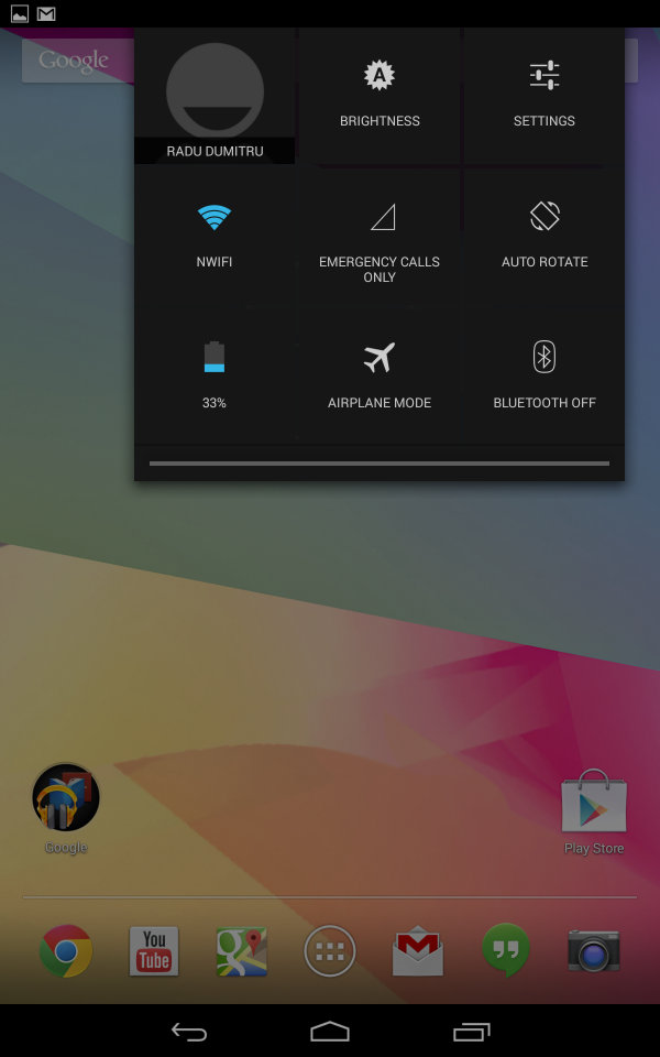 Îmi place interfața ca de telefon pe tabletă, adică ecranul de notificări prezent în partea de sus. De fapt sunt două ecran de notificări: dacă tragi mai din partea stângă, ai acces la notificările tale, iar dacă tragi din partea dreaptă a meniului de sus, ai acces la un ecran de activare a principalelor funcții.