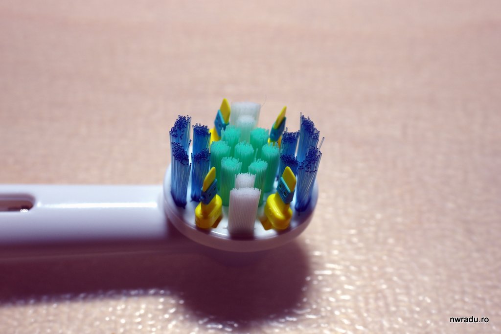 Cel cu 4 peri galbeni cauciucați este pentru eliminarea tartrului, iar cel cu galben în centru peste albirea suprafeței dintelui. Ceilalți sunt pentru periaj de zi cu zi și pentru dinți sau gingii sensibile.