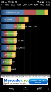 Procesorul este foarte rapid și poate deja v-ați obișnuit să spun asta despre Snapdragon 800, același care este și pe LG G2 și pe Samsung Note 3. Nu am avut probleme în a rula orice aplicație, deși m-am jucat doar FIFA 2014. Rezultatele în testele uzuale de benchmark sunt mai jos și notele obținute sunt foarte bune.