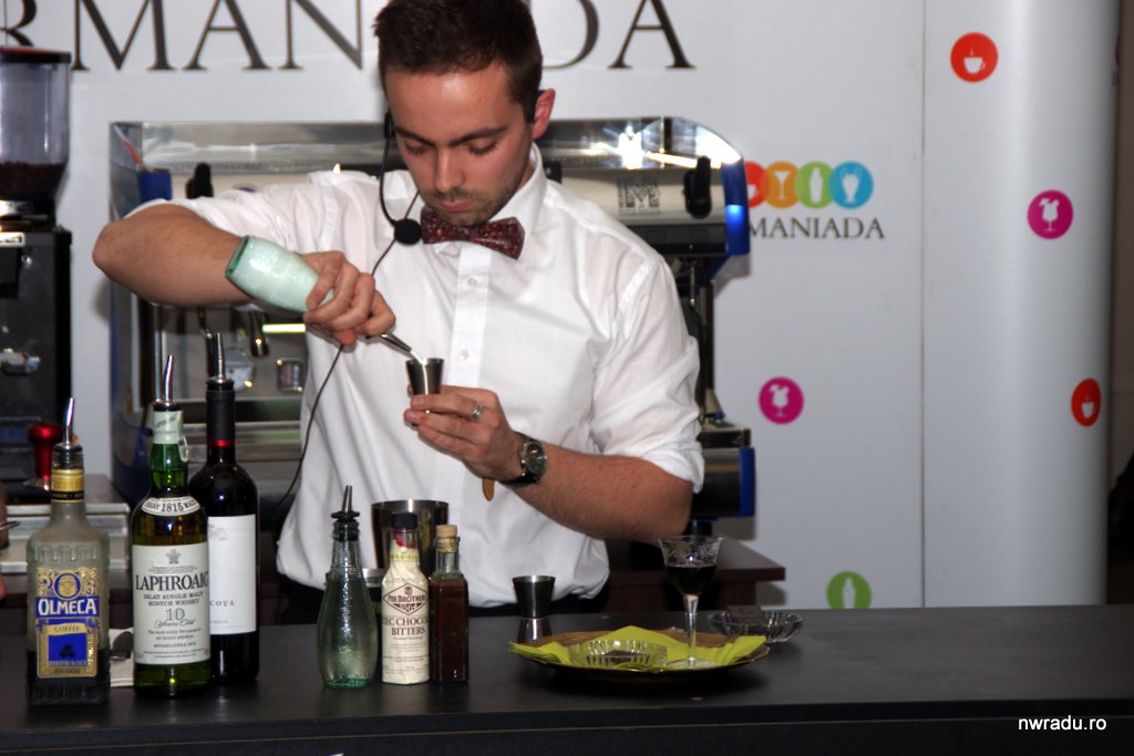 Am prins, însă, partea de cocktailuri. Barmanii s-au întrecut în cocktailuri preparate după rețete proprii, singurul ingredient obligatoriu fiind noua tequila cu lichior de cafea Olmeca Coffee. Cocktailurile n-au fost spectaculoase ca aspect – cafeaua le-a făcut pe toate închise la culoare, dar rețetele par foarte bune. Fiecare concurent venea cu propriile sale ingrediente și era evaluat de un juriu de specialitate (inclusiv oameni din străinătate) pentru tehnica și procedura de preparare.