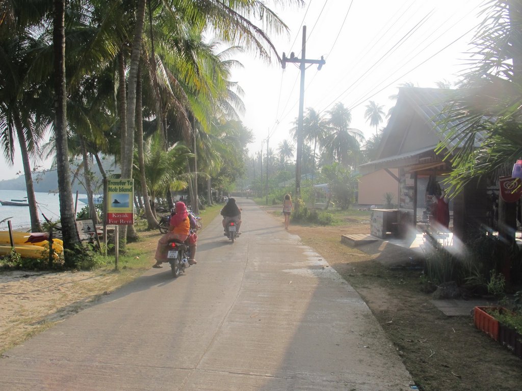 Arată perfect. Avem căsuţa noastră de lemn, hamac pe terasă, multă verdeaţă şi marea cât cuprinde. Avem chiar şi Internet, nu ca să-l folosim, normal, doar suntem pe insulă, ci doar să-i spunem familiei că am ajuns, să le arătăm şi lor pe Skype unde stăm, să le povestim cum a fost drumul, atâta tot, că plecăm în recunoaştere. Ne întoarcem orbecăind. Uitasem cum e să-ţi lumineze drumul doar stelele. Din când în când mai trece câte o motocicletă sau un moped, dar în rest e linişte. E ca la ţară, şi ca la mare, şi puţin ca la munte, în combinaţia ideală. Turişti răzleţi şi complexe turistice discrete. Nimic ţipător, nimic care să strice peisajul. Fără brizbrizuri, nimeni nu-ţi vinde nimic, trecătorii ne zâmbesc, iar noi nu trebuie să ne schimbăm expresia feţei ca să le zâmbim înapoi. Ne zâmbesc şi gazdele de la pensiune şi ne spun că pot să gătească orice vrem din meniu, în variantă vegetariană, făcând să dispară singura grijă pe care o aveam. „Pad thai şi green curry”, iar delicios e puţin spus. Ne întoarcem la căsuţă şi ardem de nerăbdare să mergem de dimineaţă la plajă. „Mâine să ne luăm lanterne…”