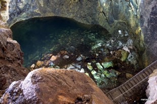 Felul în care lava s-a scurs este încă vizibil pe pereții peșterii. Apa se infiltrează permanent prin sol și în peșteră aproape poți spune că plouă, căzând frecvent picături de apă de pe tavan, motiv pentru care v-am recomandat să puneți ceva mai gros pe voi. În adâncuri se află un mic lac format de această apă, cu adâncimea de 7 metri acum, dar mai mare după ce pe insulă plouă.