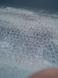 Așa că au apărut iarăși muncitorii și au pus la loc pietrele și au turnat un nou strat de liant între ele. Nu mă pricep la drumuri, nu știu sa vă spun exact ce și cum s-a pus, dar arăta ca mai jos și genera foarte mult praf în zonă. După ce s-a uzat și șlefuit acest strat suplimentar, am crezut că se termină epopeea stației.
