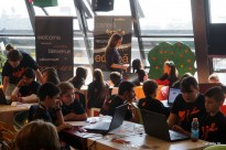 Nimeni nu pierdea vremea. M-am uitat peste toată sala și toate capetele erau aplecate la laptopuri, toți butonând sau gândind cum să rezolve o problemă. Erau instructori peste tot, aproape fiecare masă avea câte unul. Se uitau la proiecte, ziceau “da, acum arată mult mai bine, îmi place cum ai făcut-o, acum vezi dacă poți să…”, îi ajutau unde era nevoie. Calm, liniște, muncă, distracție într-un singur loc.