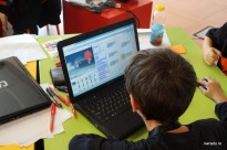 Toți copiii se distrau bine, zic eu. Nici nu mă mir, s-a lucrat cu platforma Scratch, gândită special pentru a-i iniția pe copii în programare prin jocuri și animații, dar cu toții păreau chiar foarte prinși de ceea ce încercau să facă, foarte implicați în a duce la capăt proiectul.