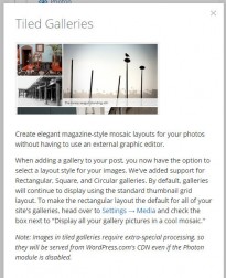 Tiled Galleries face un singur lucru, vă aranjează galeria de fotografii sub o formă mai plăcută ochiului, dar pe mine m-a interesat un efect secundar al acestei funcții: pentru a rearanja respectiva galerie, modulu Tiled Galleries urcă automat fotografiile tale pe un CDN gratuit, ținut de WordPress, și le servește de acolo vizitatorilor.