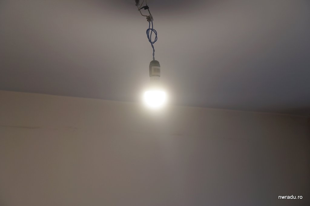Ca să vă dați seama cum iluminează acest bec, l-am pus în tavan și am făcut fotografii la aceleași setări cu becul stins și cu el aprins.