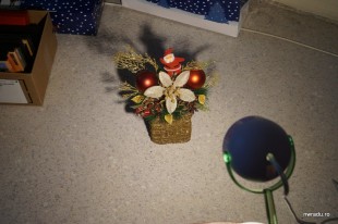 Iată fotografii cu și fără lampa aprinsă. Pentru un birou oferă o lumină suficientă și o dispersie bună: nu iluminează întreaga cameră, dar nici nu are un con de lumină prea îngust. Mi-ar fi plăcut un picior mai înalt, ca să bată de mai sus lumina. Lumina este tot alb cald.