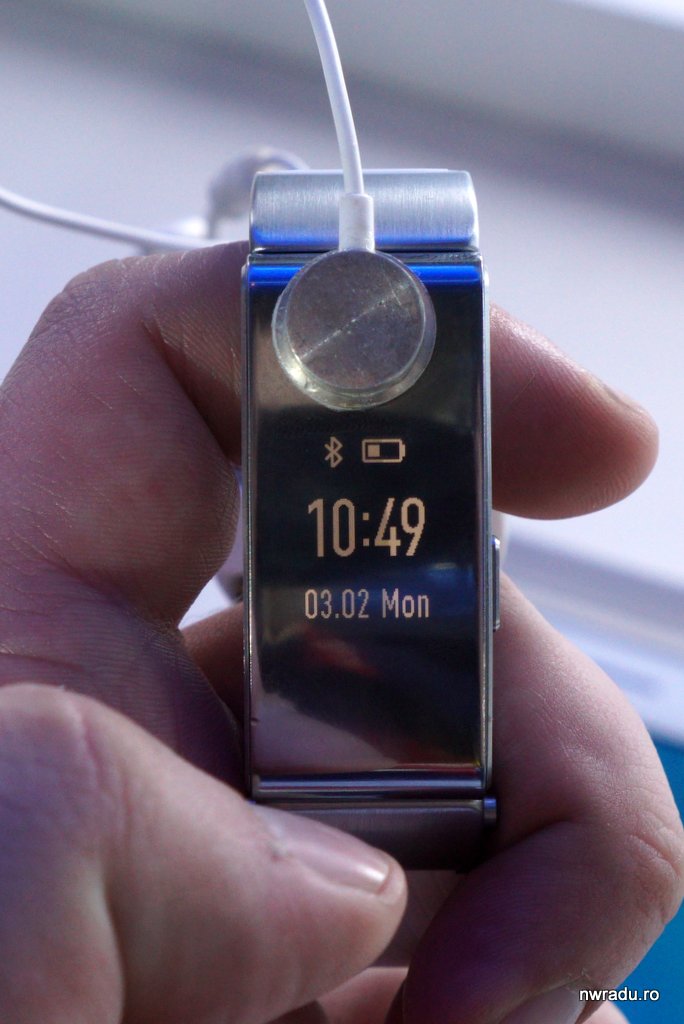 Uitați o idee bună de la ei: brățara Talkband B2. Este un tracker de fitness, îți monitorizează pașii, cât ai dormit și cât de adânc, câte calorii ai consumat, iar în plus arată ora și notificările de pe telefon pe un micuț ecran ce pare a fi un dot-matrix. Arată bine, are curea frumoasă și un design elegant, protecție IP57 la apă și praf.