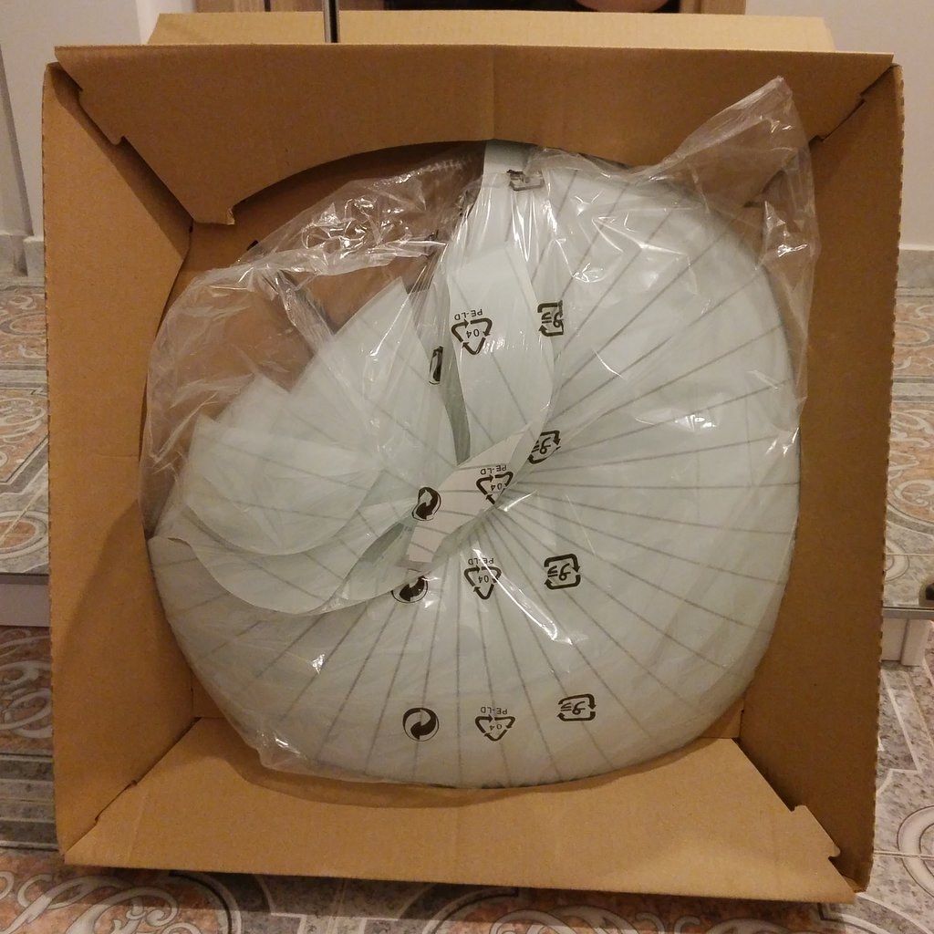 Întâmplător noul abajur are o micuță crăpătură pe una dintre părți și cred că acum aș putea să-l duc din nou acolo, spunând că n-am observat-o la achiziție și că vreau una nouă. Nu voi face asta, mi s-ar părea mârlănie după ce am economisit 100 de lei pentru că mi-au găsit una de schimb. E o crăpătură de 1 cm oricum.