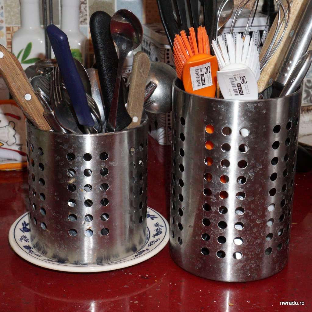 Înainte țineam toate ustensilele în două borcane și în sertar, acum am luat o tavă Stodja.