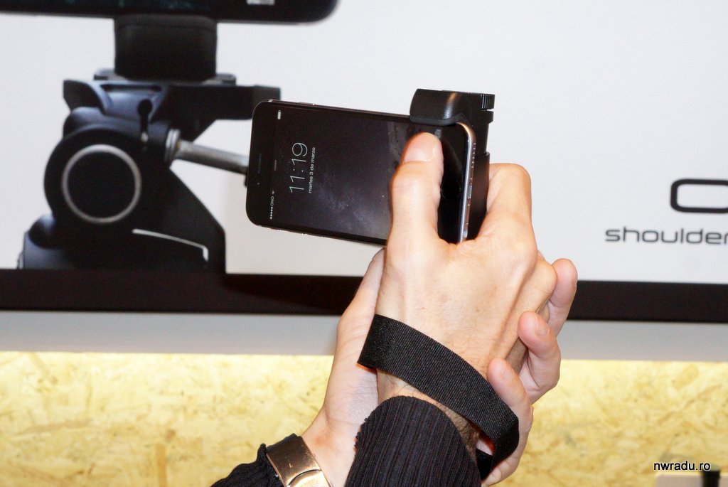 La un stand am găsit acest suport de telefon și mi-a plăcut ideea, fiind un 3-în-1. Se numește Shoulderpod S1 și este fabricat de o companie din Barcelona.