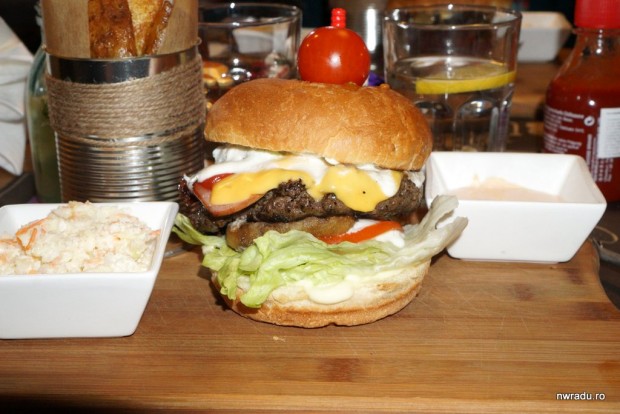 Update decembrie 2016: am fost din nou. Au mai schimbat sosurile și meniurile, iar localul are foarte mare succes, e cam obligatoriu să faceți rezervare înainte de a merge acolo, mai ales în weekend. Am mâncat un Switch & Eat Burger la 38 de lei, care cuprinde și vită și pulled pork, plus bacon, rucola, ceapă caramelizată, emmentaler, castraveți murați, ardei iuți jalapenos, maioneză cu ceapă. Este un monstru, pentru cei mai pofticioși.