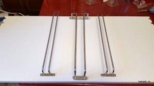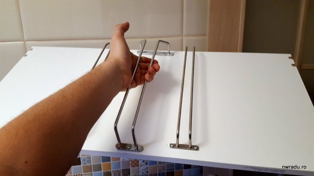 Iată suporturile, am luat unul mare, cu prindere în ambele capete, și două mai mici. Până la urmă n-a contat, toate trei își duc sarcina la îndeplinire. Dacă vreți să cumpărați un astfel de suport, măsurați adâncimea poliței pe care vreți să-l montați și alegeți unul care este cu 1-2 cm mai mic ca lungime. Polița mea are 35 cm adâncime și am luat suporturi de 34 și 31 cm.