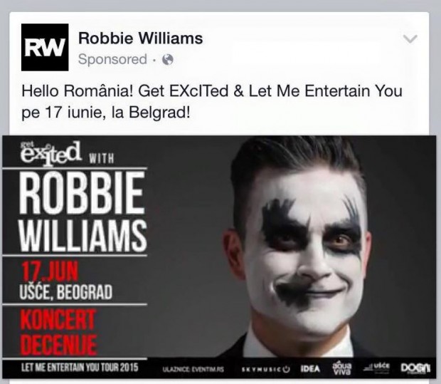 Ce s-a întâmplat de fapt? Robbie Williams chiar are concert pe 17 iunie, în Belgrad, așa cum scrie în mesajul său. Pe 17 iulie va concerta în București.