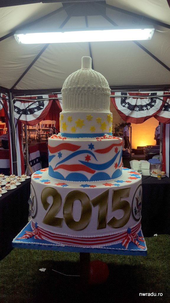 Mă așteptam să nu mă lase în interior cu telefonul mobil, dar mi l-au lăsat și am fotografiat cât am vrut eu. De fapt, în discursurile ulterioare ale gazdelor urma să fim chiar încurajați să folosim hashtag-ul #4iulie pentru fotografii, semn că nu degeaba SUA au inventat “social media” unde, de altfel, ambasada SUA la București face o treabă chiar bună pe Facebook.
