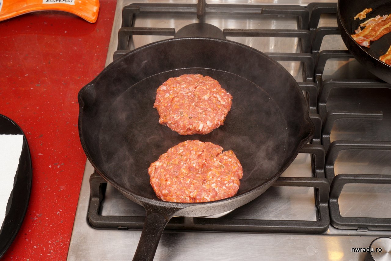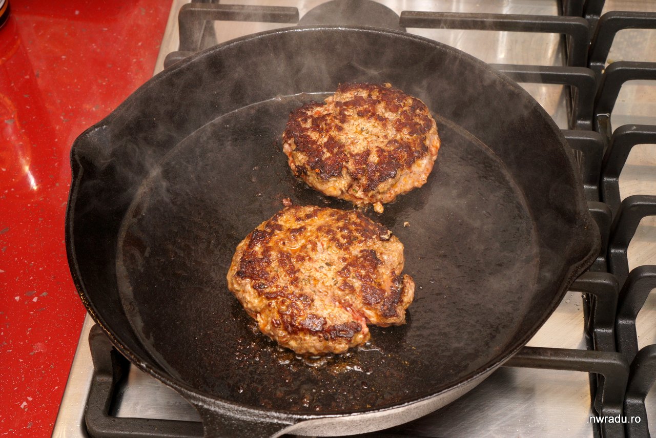 Am luat si eu din LIDL carnea gata facuta burgeri si intr-adevar a fost foarte buna. Am afumat un pic casa, dar rezultatul a fost foarte bun.