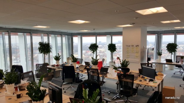 Mi-au plăcut birourile celor din echipa de core banking. De fapt, mi-a plăcut un amănunt, toate mesele erau pe roți, astfel încât oamenii să-și poate reconfigura rapid spațiul de lucru după cum apare nevoia de a se grupa.