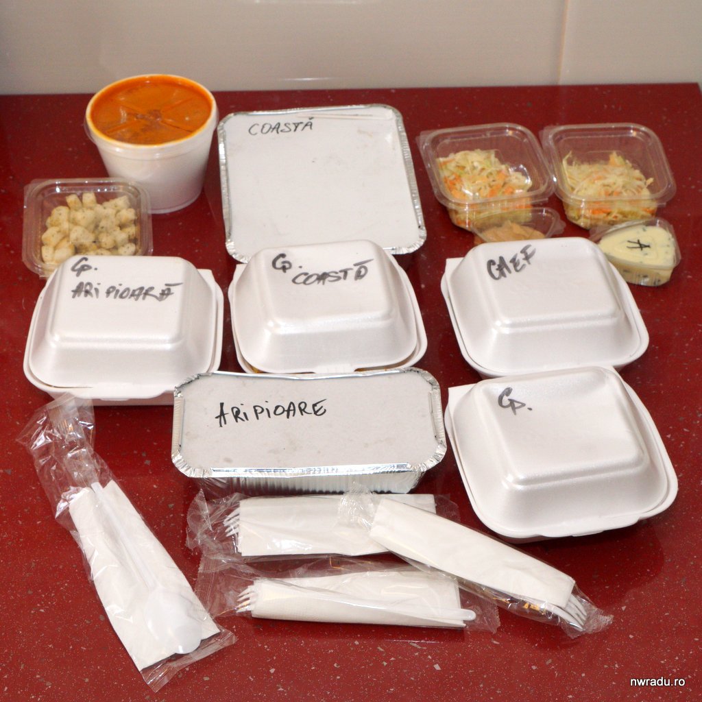 Am primit toate cele de mai jos, frumos ambalate, cu sosurile atașate și cu crutoanele pentru supă. A fost un ospăț, pot spune, am mâncat foarte bine și, de fapt, am rămas cu gândul să merg și în restaurant pentru a include burgerii în Turul Burgerilor, pentru că cel primit la livrare a fost foarte bun.