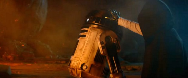 Observați că e o scenă de noapte și luptă, că doar bănuiesc că R2D2 nu se afla în fața focului de la un grătar, făcând un vițel la proțap și uitându-se la filme pe tabletă.