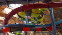 Vedeți cum toboganul de mai jos are un ecran în partea dreaptă, la intrare? Acesta este cel mai de sus, iar din acel ecran fiecare poate alege unul dintre multiplele programe ce schimbă luminile și muzica din interiorul său. Da, te dai pe tobogan pe muzica și cu luminile alese de tine!