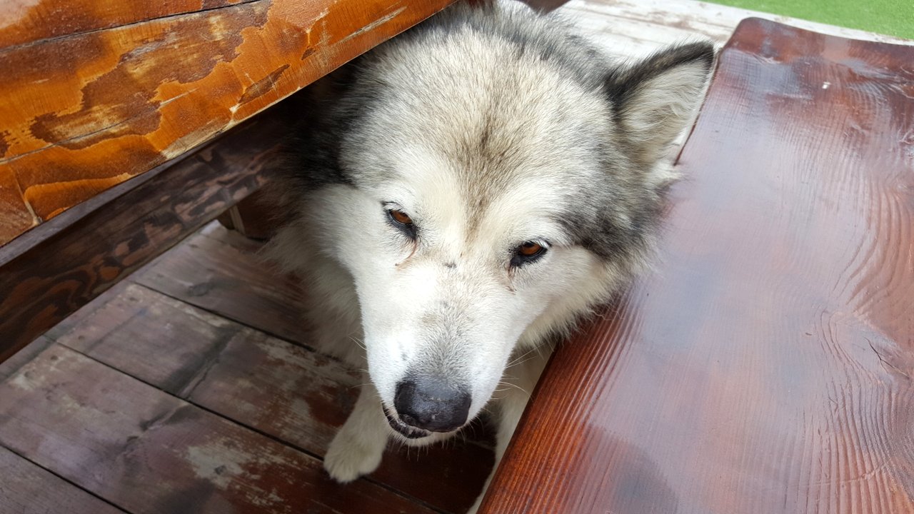 Dihania asta voia acces la farfuria mea cu micul dejun, dar noroc că avea capul așa mare că nu-l putea scoate deasupra mesei.
