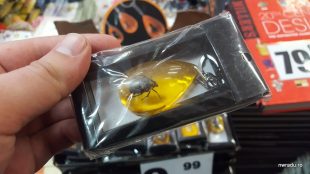 Acum partea ciudată. Tot acolo am găsit produsele de mai jos. Nu înțeleg de ce ar vrea cineva un breloc cu un gândac “înghețat” acolo în el. Eu m-aș speria de câte ori aș pune mâna pe el.