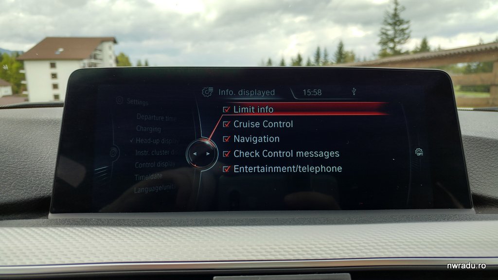 BMW-ul era și permanent conectat la Internet. Are propriul sistem de navigație, dar un meniu de căutare îmi întorcea și rezultate din Google Maps, iar dacă alegeam un punct de interes recunoștea automat informațiile atașate acestuia și îmi oferea posibilitatea să apelez telefonic sau să navighez acolo (nu tot cu Google Maps, din păcate, dar are și BMW hărți bune). Mai ai acces și la un flux de știri, la informații meteo și alte câteva șmecherii.
